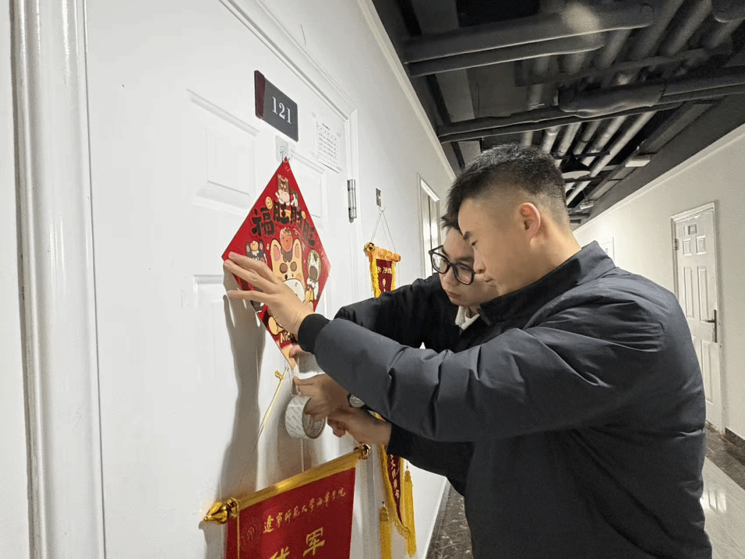 辞旧岁迎新春随着寒假的临近春节的脚步也愈发临近辅导员携联送暖学子巧手贴福一言一行皆是温情一字一句满是祝愿用春联装扮起温馨宿舍辅导员手提装满春联的福袋...