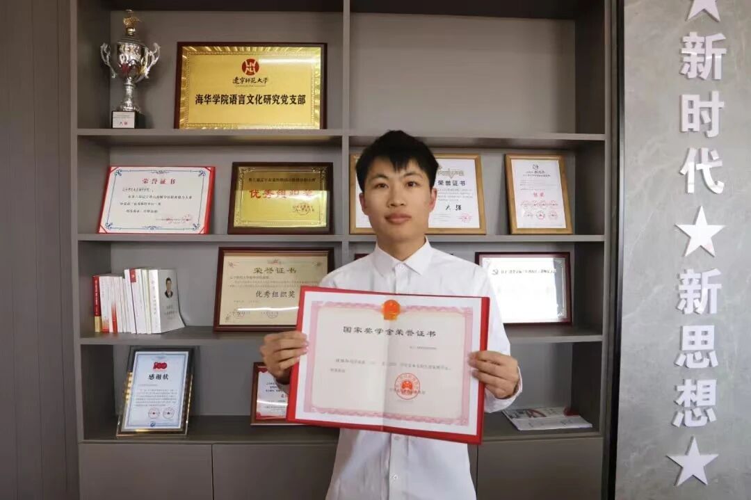 徐福阳,男,中共预备党员,外国语学院英语专业2021级学生。现任外国语学院英语专业2021级8班班长,曾任院学生会主席、校团委第六届青年体育中心副部长。在校期间,他先后获得“十佳共青团干部”“三好学生标兵”“优秀学生干部标兵”“优秀助理辅导员”等20余项校级荣誉称号,同时荣获“国家奖学金”“国家励志奖学金”,连续两年获得校级“一等奖学金”。累计获得奖学金30000余元。