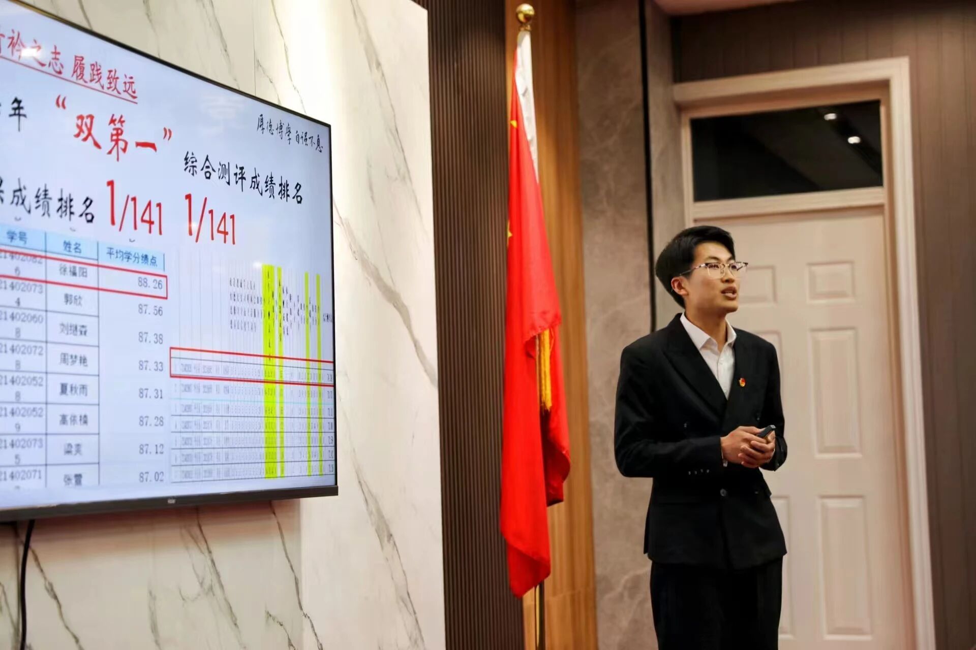 徐福阳同学在思想上积极向党组织靠拢,不断加强理论学习,时刻以一名党员的标准严格要求自己,在经推选后成为我校第76期入党积极分子、第52期发展对象以及我校第三期校级“青马工程”团学骨干培训班学员,现已顺利结业并获评“优秀学员”称号。入学以来,徐福阳同学始终保持着优异的成绩。在大一学期,他取得了专业成绩和综合测评排名“双第一”的好成绩。
