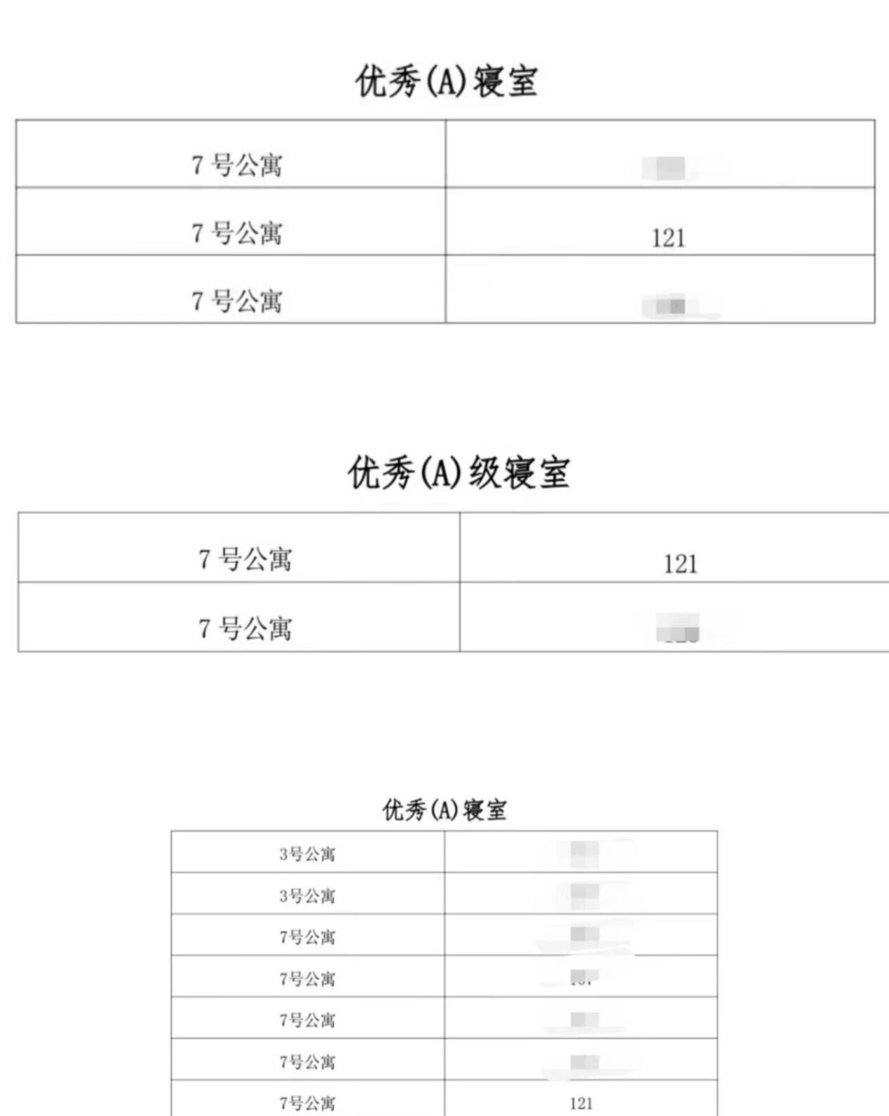 自入学以来,121寝室多次获得优秀A级寝室。在军训期间,获得军训内务卫生优秀寝室、军训优秀个人称号。