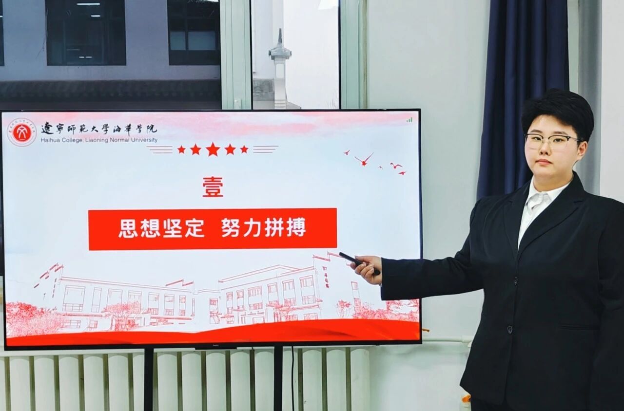 王雨凡,女,共青团员。外国语学院英语专业2021级学生。现任2021级英语二班学习委员,曾任辽宁师范大学海华学院外国语学院组织部干事。在校期间,她先后获得“优秀共青团干部”“三好学生标兵”“优秀学生干部标兵”等20余项校级荣誉称号,同时获得一次校级“二等奖学金”、两次校级“三等奖学金”。
