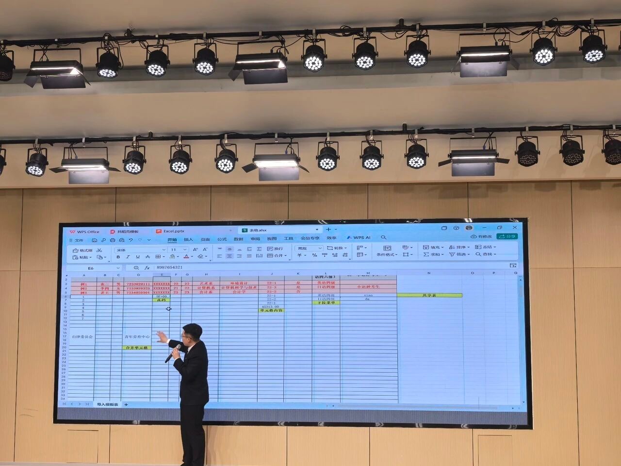 培训中,郑光宇同学围绕“Excel的基本应用讲解”和“Excel的实际教学”两大主题,为学生干部们带来了一场生动而实用的Excel深度讲解。他从Excel的基础操作入手,逐步深入到数据整理、图表制作、公式运用等高级功能,通过现场演示和互动问答的方式,让学生干部们更加直观地了解Excel的强大功能和广泛应用。