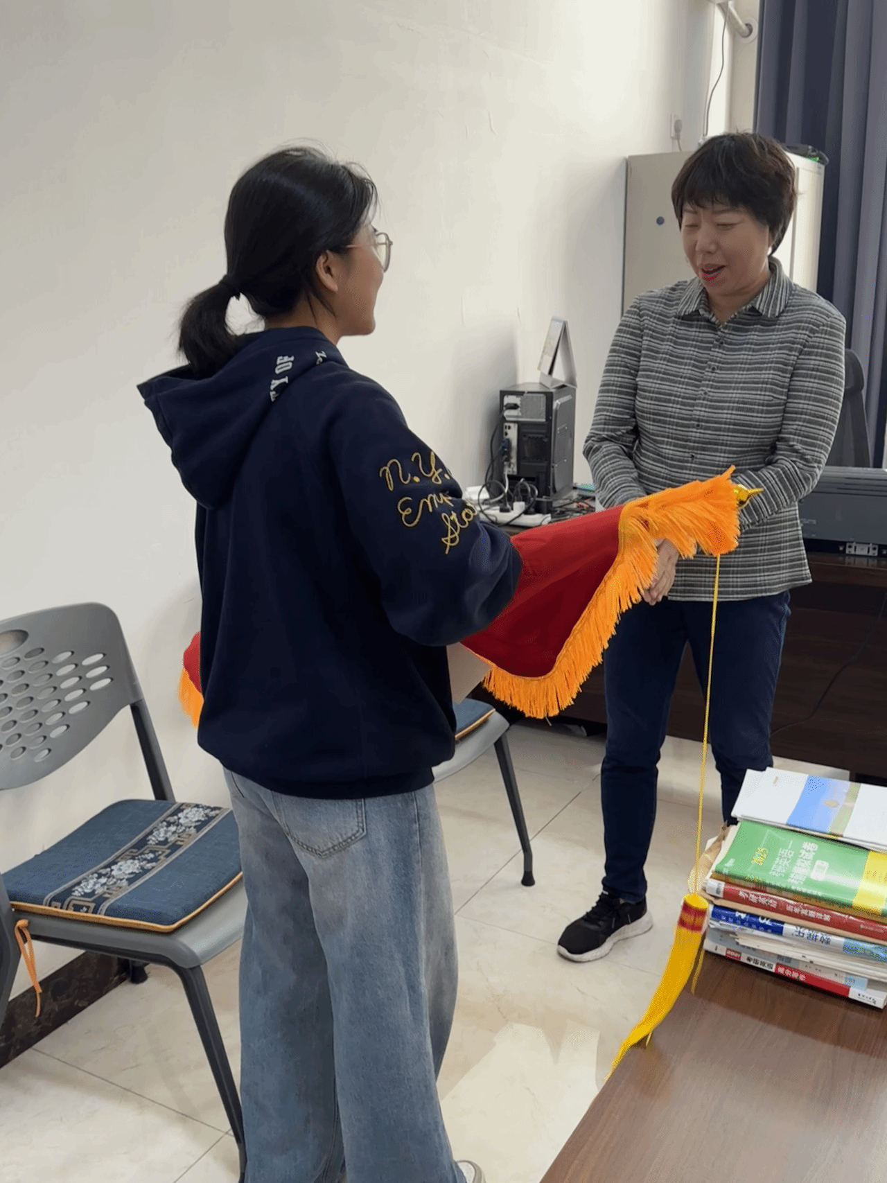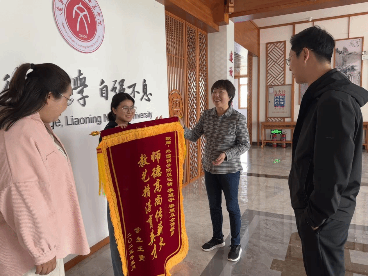 为表感激,她将精心准备的锦旗郑重赠予学院领导和老师。锦旗上的字字句句,承载着她对师长的诚挚谢意,也见证了师生间深厚的情谊。王贤说,锦旗的落款是外国语学院全体老师,一路走来她的成功离不开外国语学院每一位老师的帮助,她将心怀感恩,并且将这份善意继续传递,塑造更好的自我。未来,外国语学院将持续秉持育人初心,为更多学子搭建逐梦平台,助力他们在不同领域绽放独特光彩,携手书写学院蓬勃发展的崭新篇章。