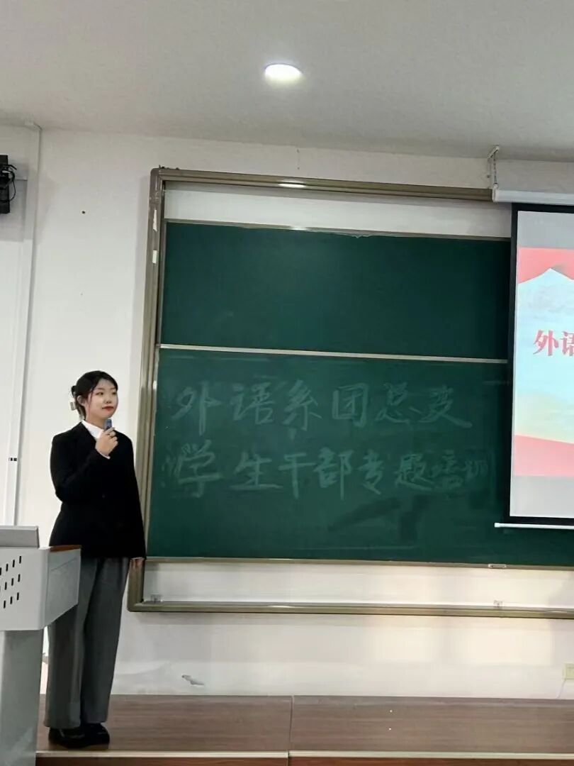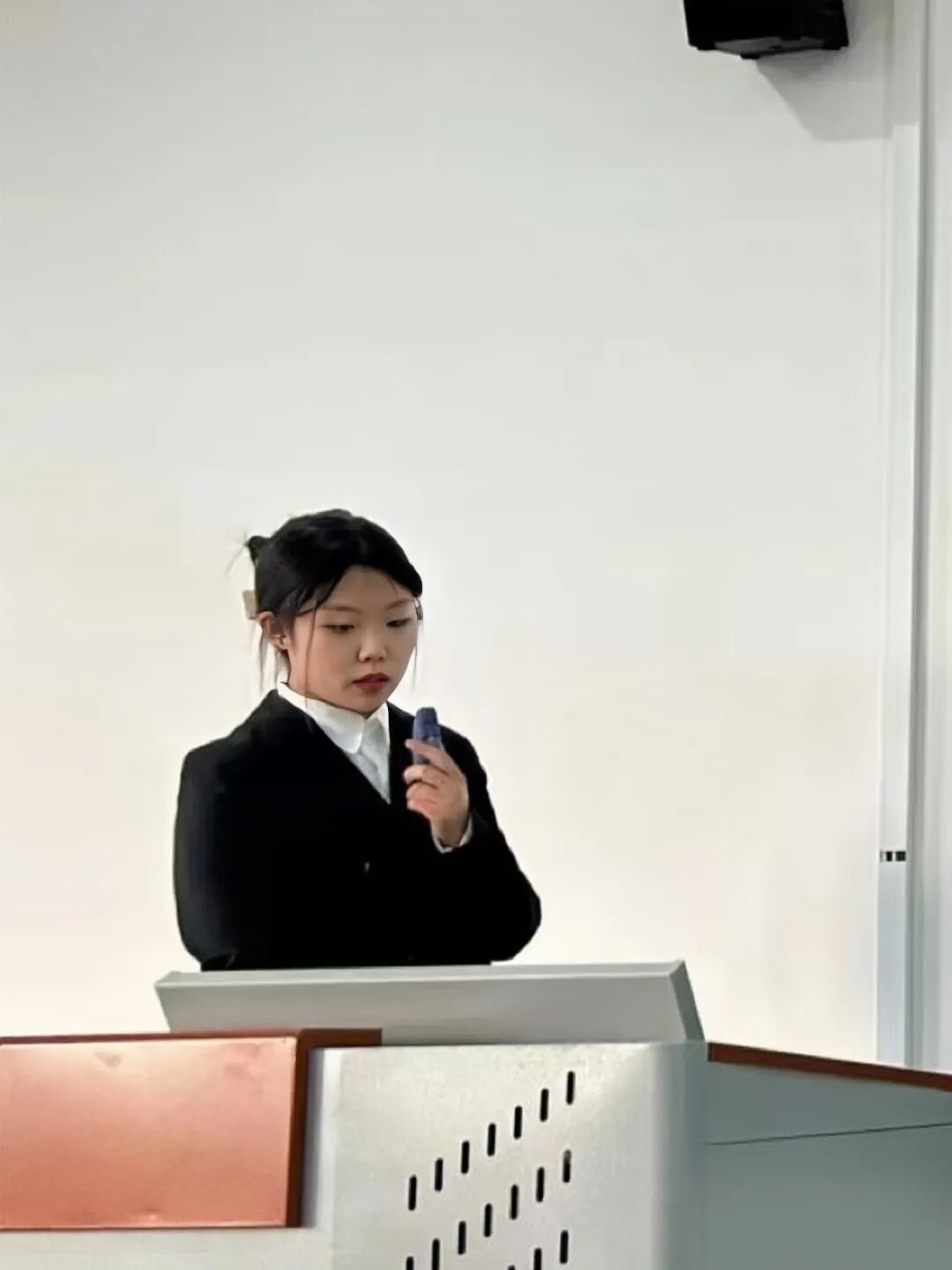 她一直以一种自强奋进、热心奉献社会的精神状态面对生活,以严于律己、认真负责、努力奋斗的标准要求自己。不断加强自身素养的同时,为班级同学服务。认真履行生活委员本职工作的同时,也积极协助其他班委进行班级管理工作。在她担任外国语学院学生会主席期间,作为学生组织的核心力量,以创新思维赋能传统活动,牵头策划“书法大赛”吸引多数学生参与,统筹执行的“防诈骗情景剧大赛”实现安全教育与美育的有机融合;在迎新工作中主导拍摄的学院宣传视频,以青春视角展现外国语学院风采。她始终以精准对接需求,凝聚团队智慧为工作准则,搭建起师生沟通的彩虹桥梁。这份脚踏实地的信念,描绘着当代她的成长轨迹。