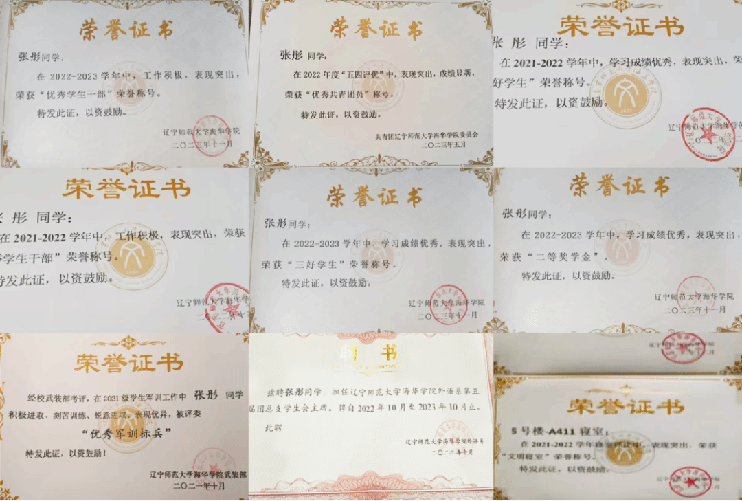 张彤同学在求知路上步履坚定,更以炽热的心跳将个人理想熔铸于公益长河。她在“海华突击队”中作为校园防疫的志愿者,尽心尽力协助学院搭建防护屏障;而走出校门,她也为在宽甸满族自治县希望小学的孩子们进行力所能及的捐赠。22.2小时的青春大连志愿时长不仅是数字,更是她将青春热力织成奉献经纬的见证。