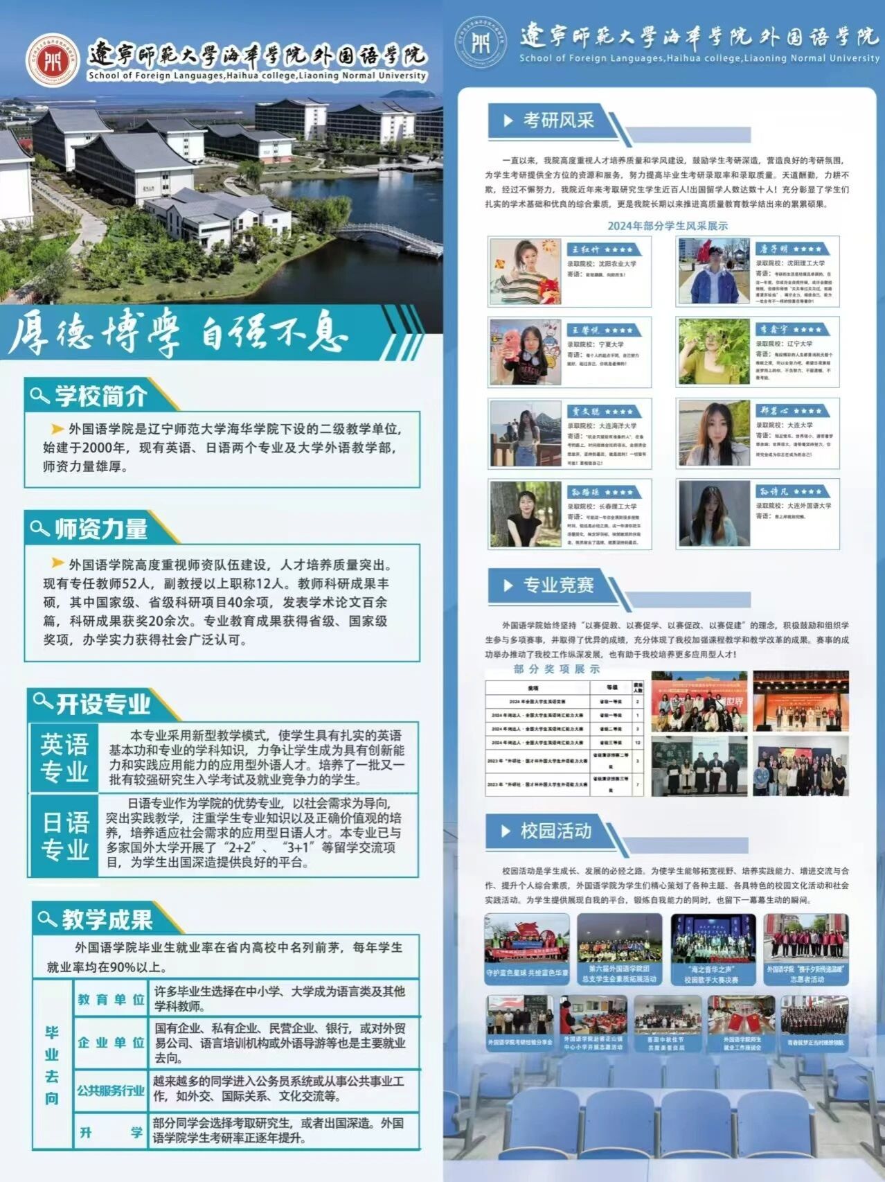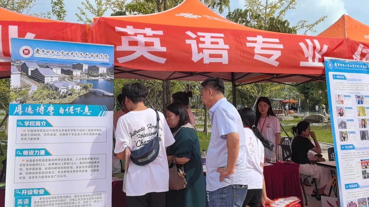 迎新现场,外国语学院结合专业特色开展迎新活动。专门设置涵盖专业介绍、升学、竞赛和学院活动等内容的易拉宝。方便家长陪同学生报到时能够更加了解外国语学院的同时,也让新生对自身专业以及大学生活有了初步了解。