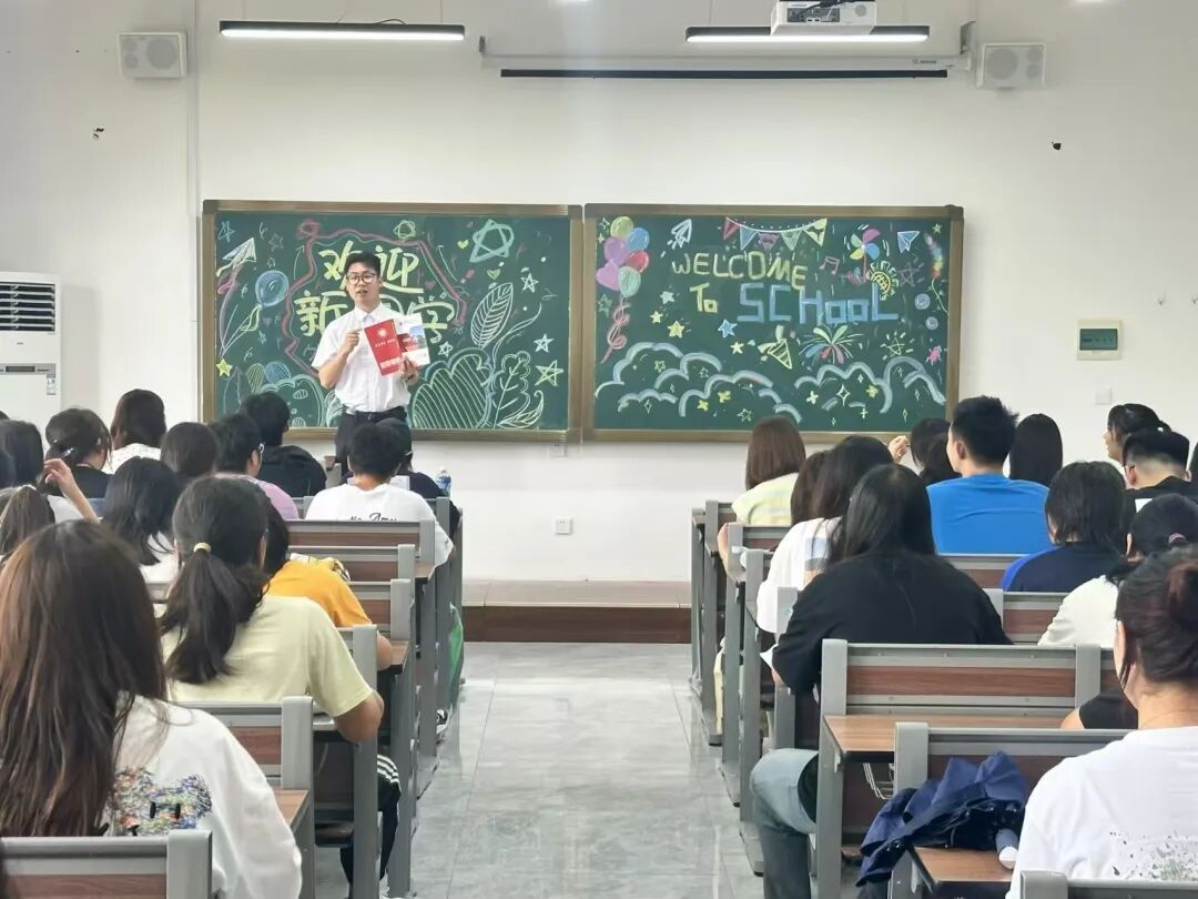 为帮助2024级新生尽快适应大学生活,完成角色转变,增强自我教育、自我管理和自我服务的能力,外国语学院辅导员祝浩楠于2024年8月20日开展了新生入学教育活动,希望帮助学生树立正确的世界观、人生观和价值观,系好大学生活的第一粒扣子。