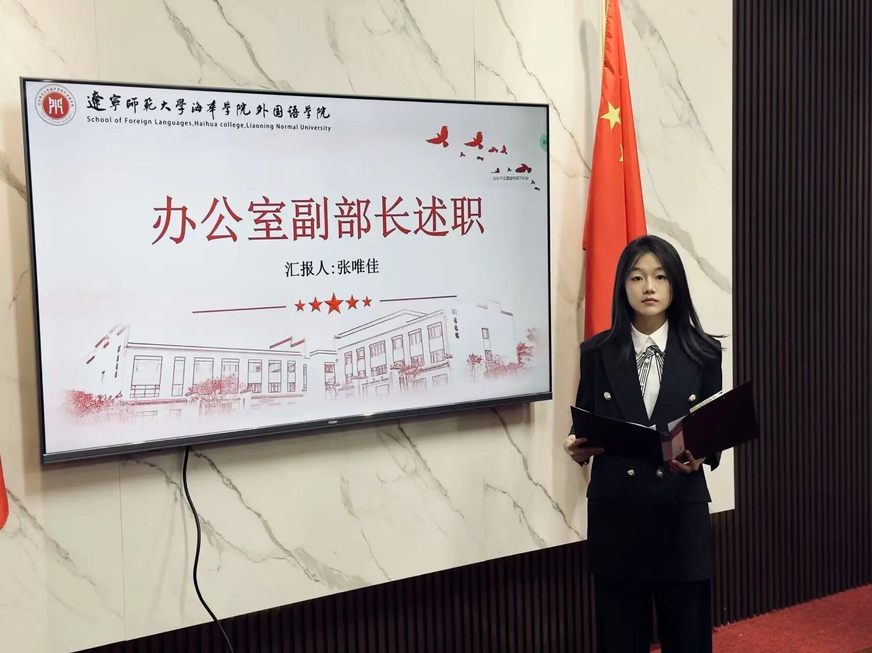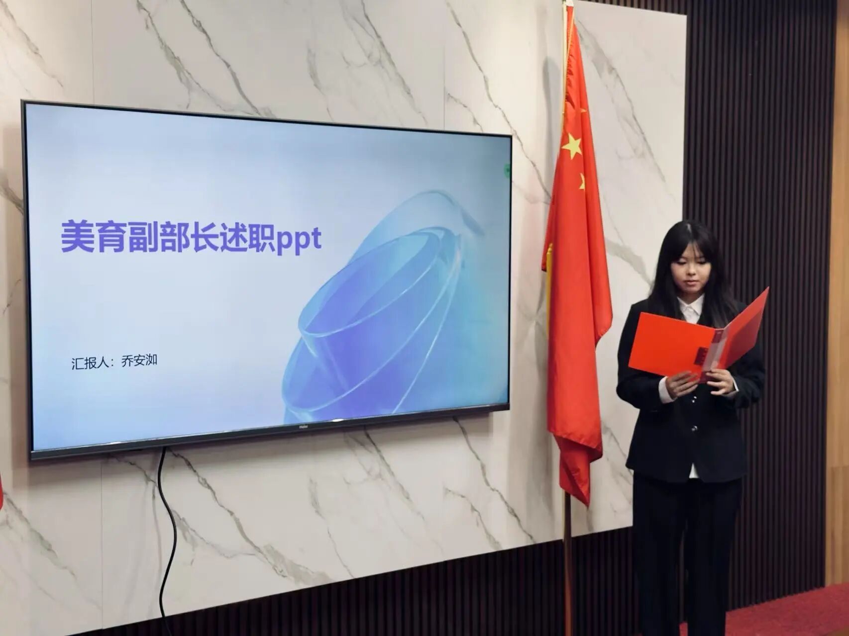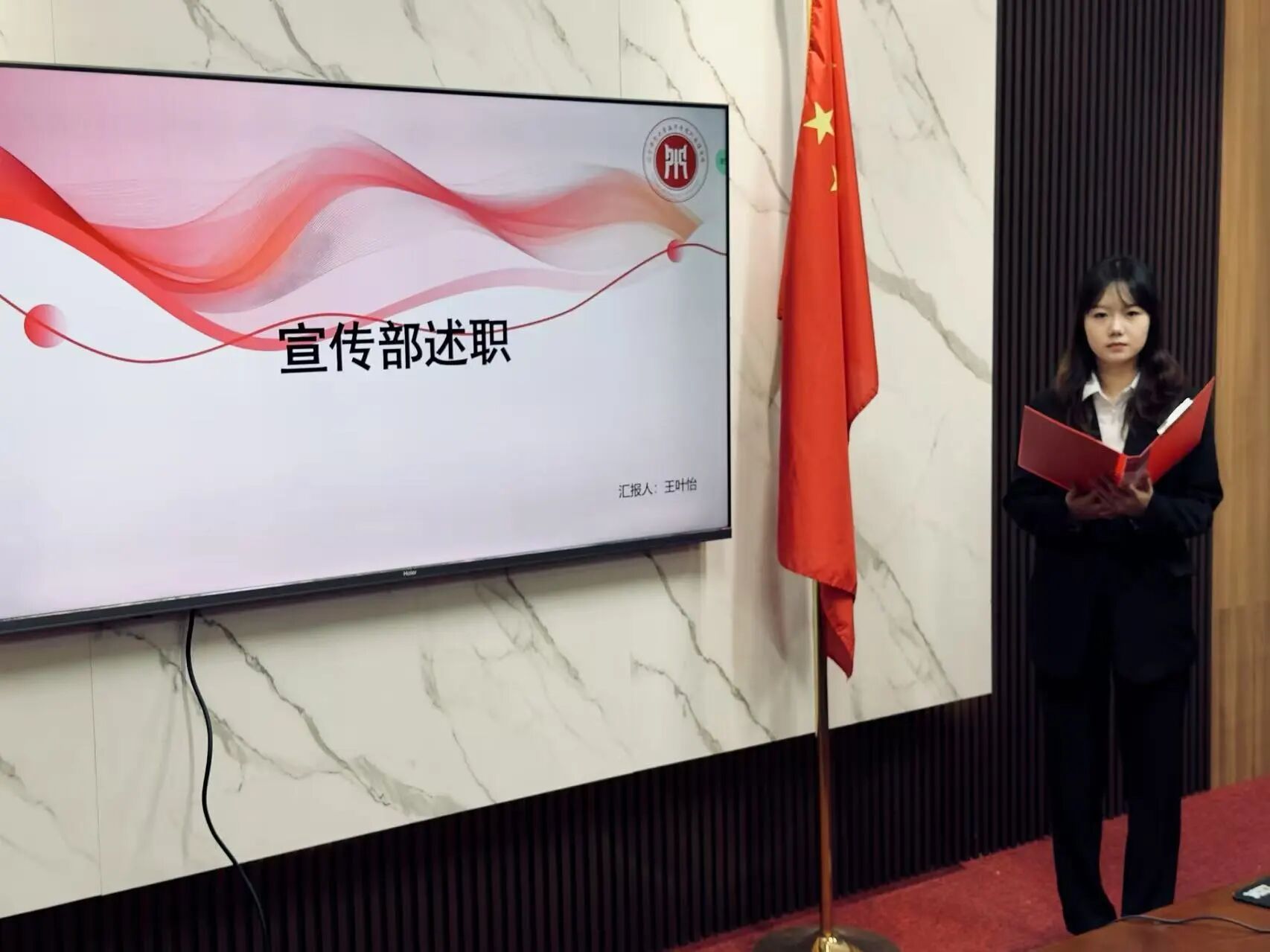 各部门部长、副部长围绕部门工作、未来规划等问题依次上台述职。从日常工作到活动组织,部长们细数上一年的各项工作成果,深度剖析难题与挑战,提出一系列具体可行的改进措施,并对部门未来的发展方向进行了清晰展望,充分彰显出学生骨干高度的责任心和严谨的工作态度。