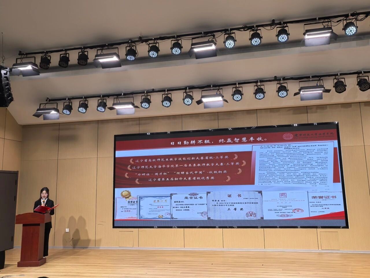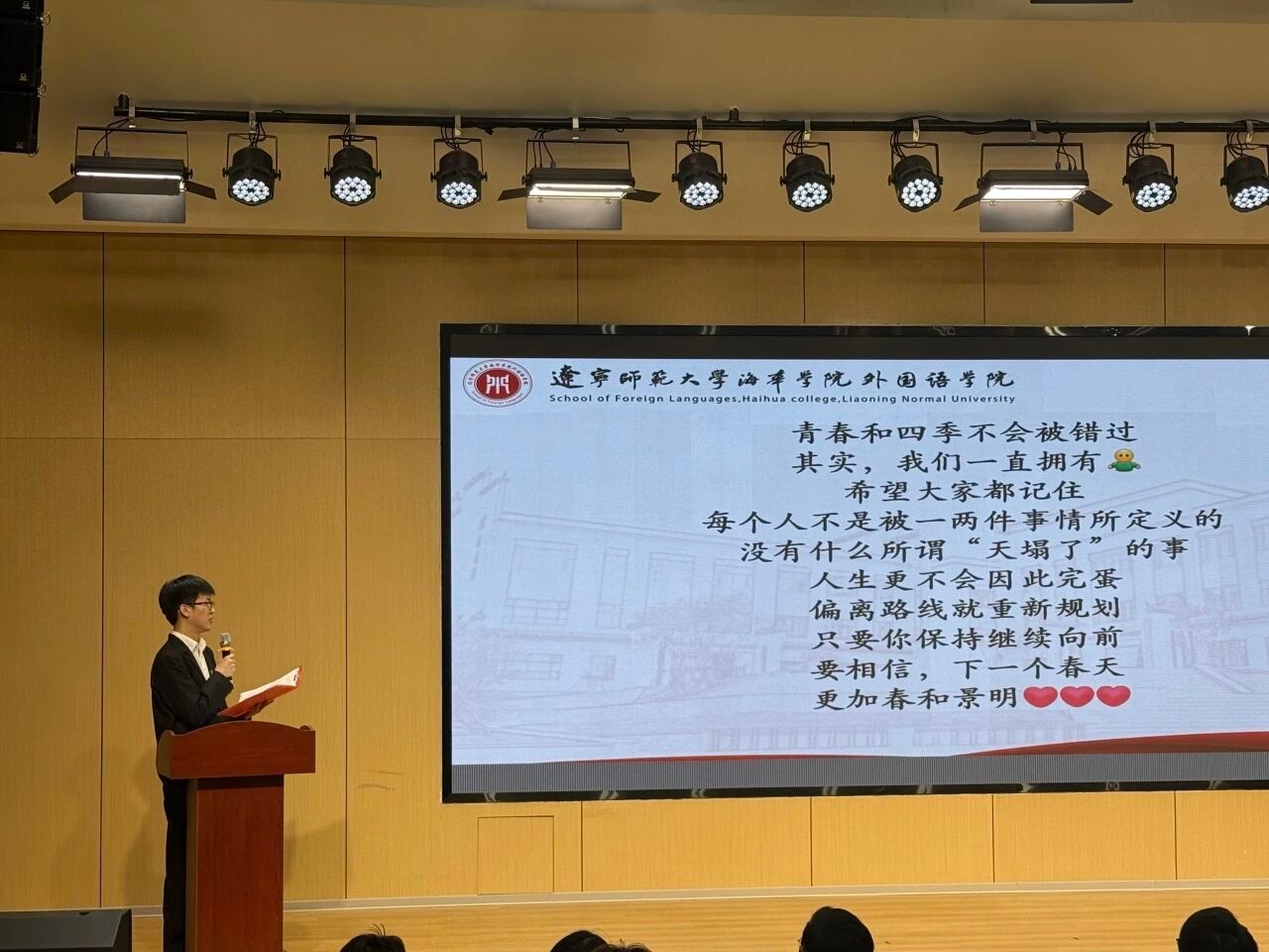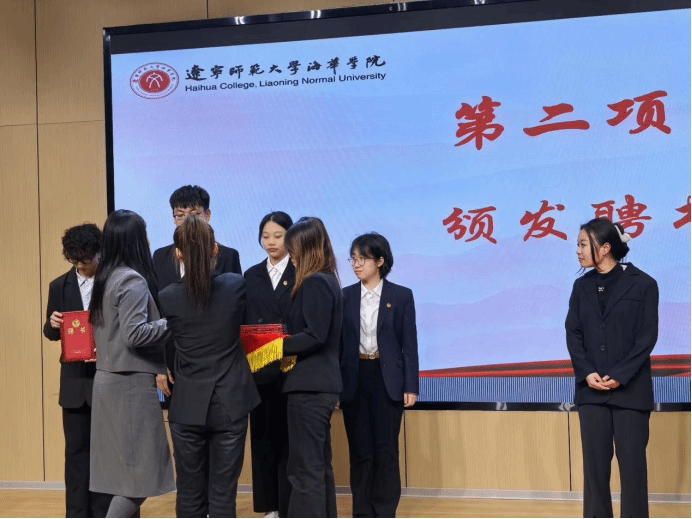 大会第三项议程,外国语学院辅导员徐莲雪老师为宣讲团成员颁发聘书。这一纸聘书承载着学院的信任与殷切期望,是对宣讲团成员们能力的高度认可。接过聘书,成员们正式肩负起宣讲团的使命,踏上为学院发展贡献力量的知识传播、思想引领之路。