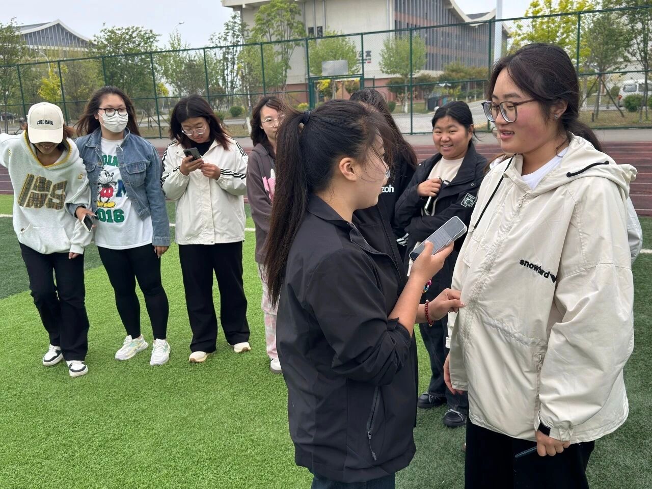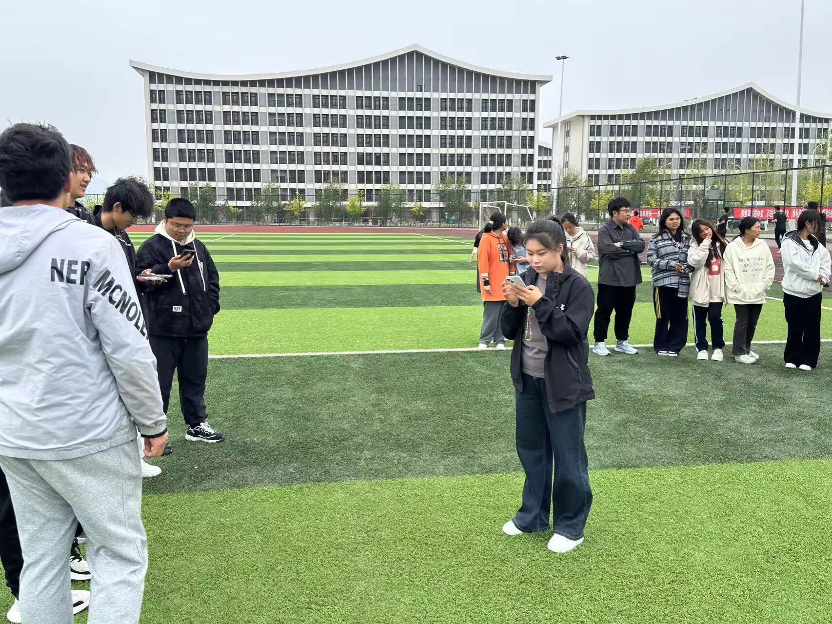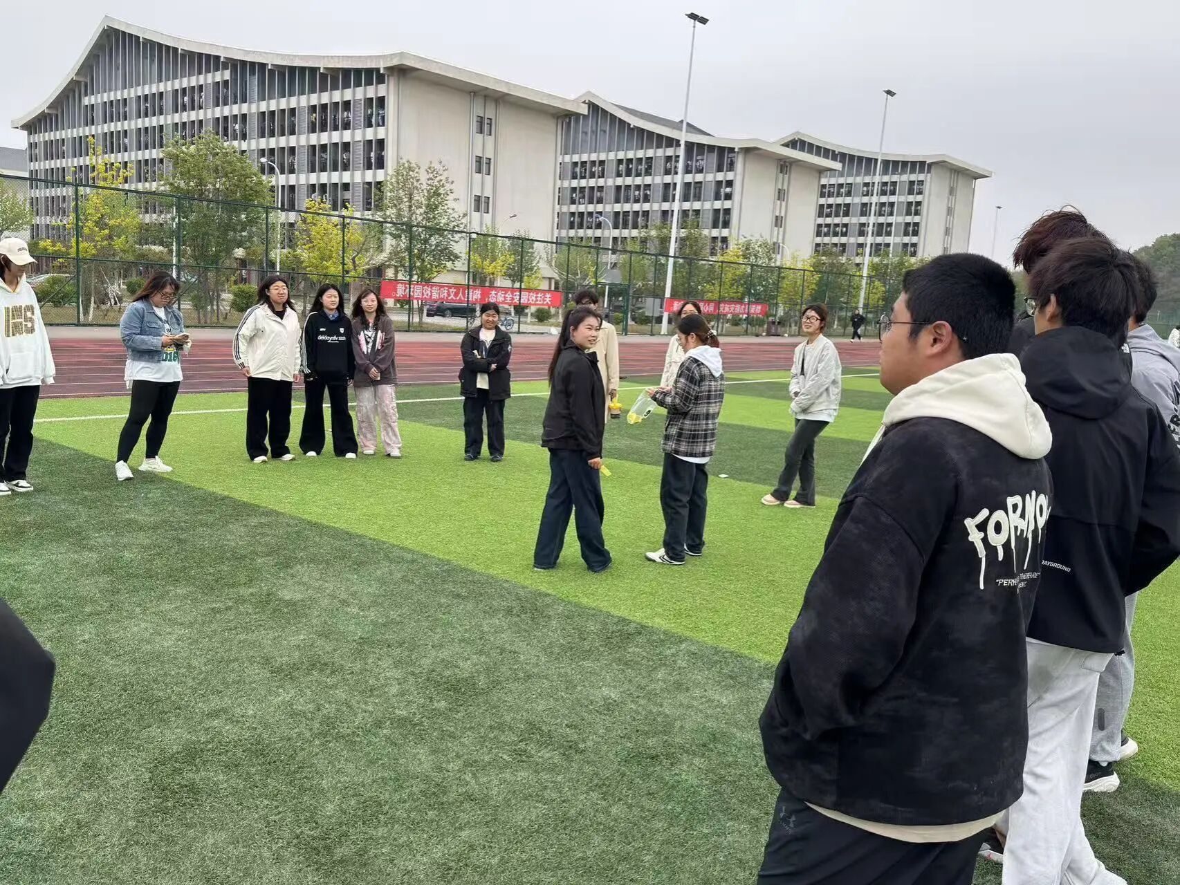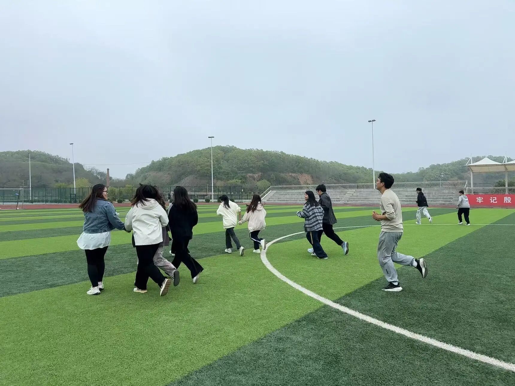 活动第四项:心灵追逐。现场分成抓人组和逃脱组进行追逃游戏。大家在操场上尽情奔跑,在运动中释放压力。一场游戏下来,大家累得气喘吁吁,却感觉心情畅快了许多。