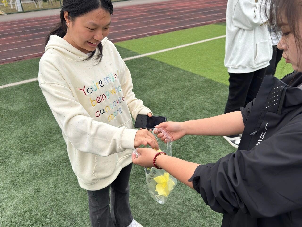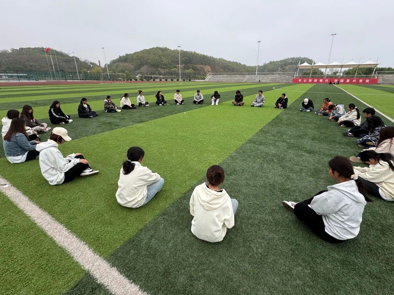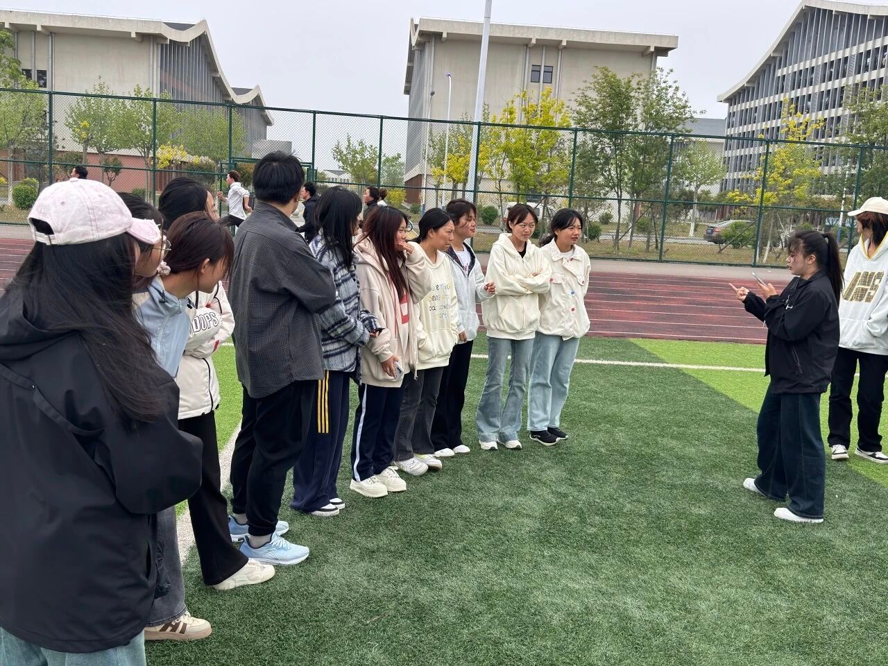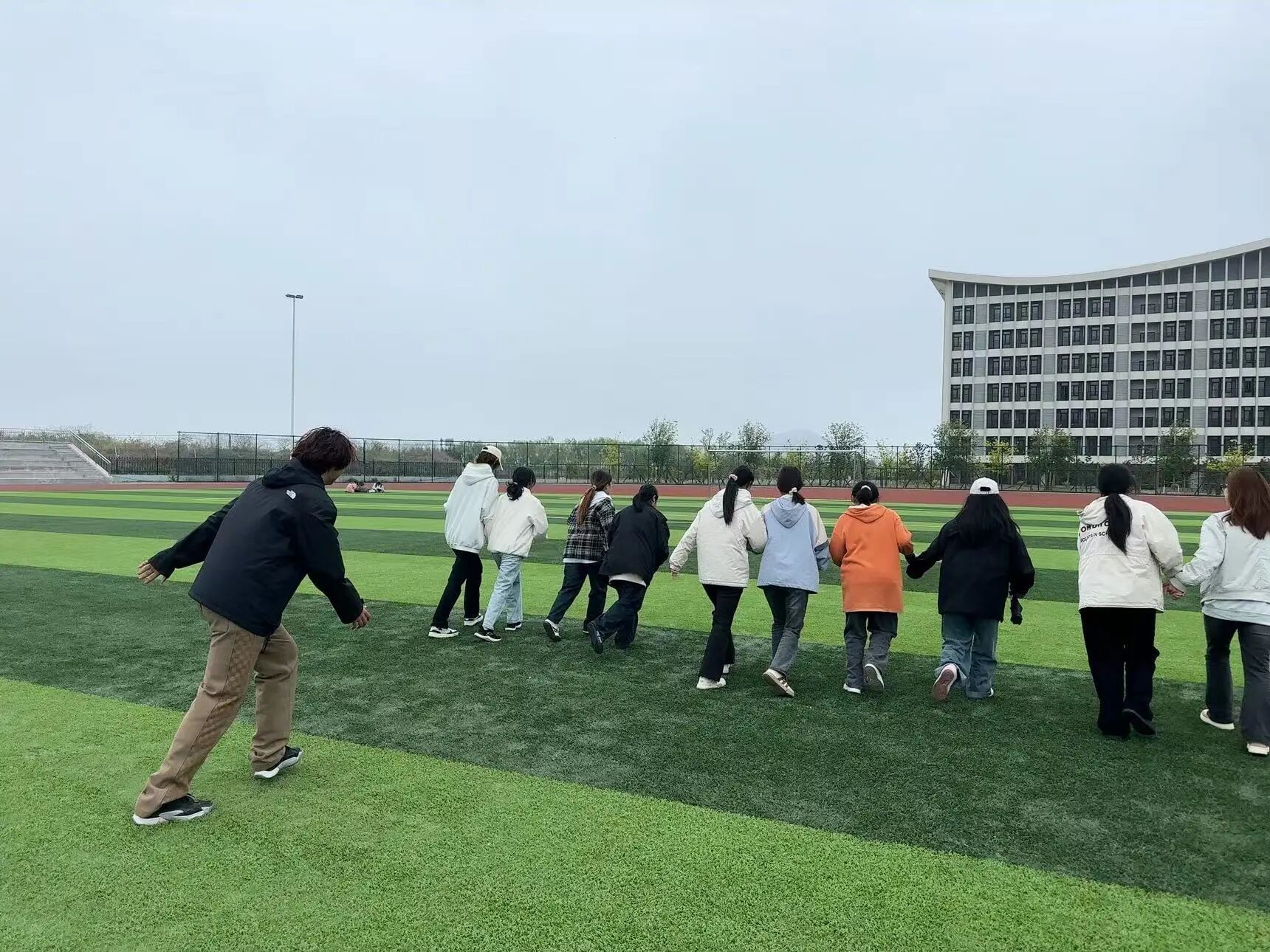活动第四项:心灵追逐。现场分成抓人组和逃脱组进行追逃游戏。大家在操场上尽情奔跑,在运动中释放压力。一场游戏下来,大家累得气喘吁吁,却感觉心情畅快了许多。