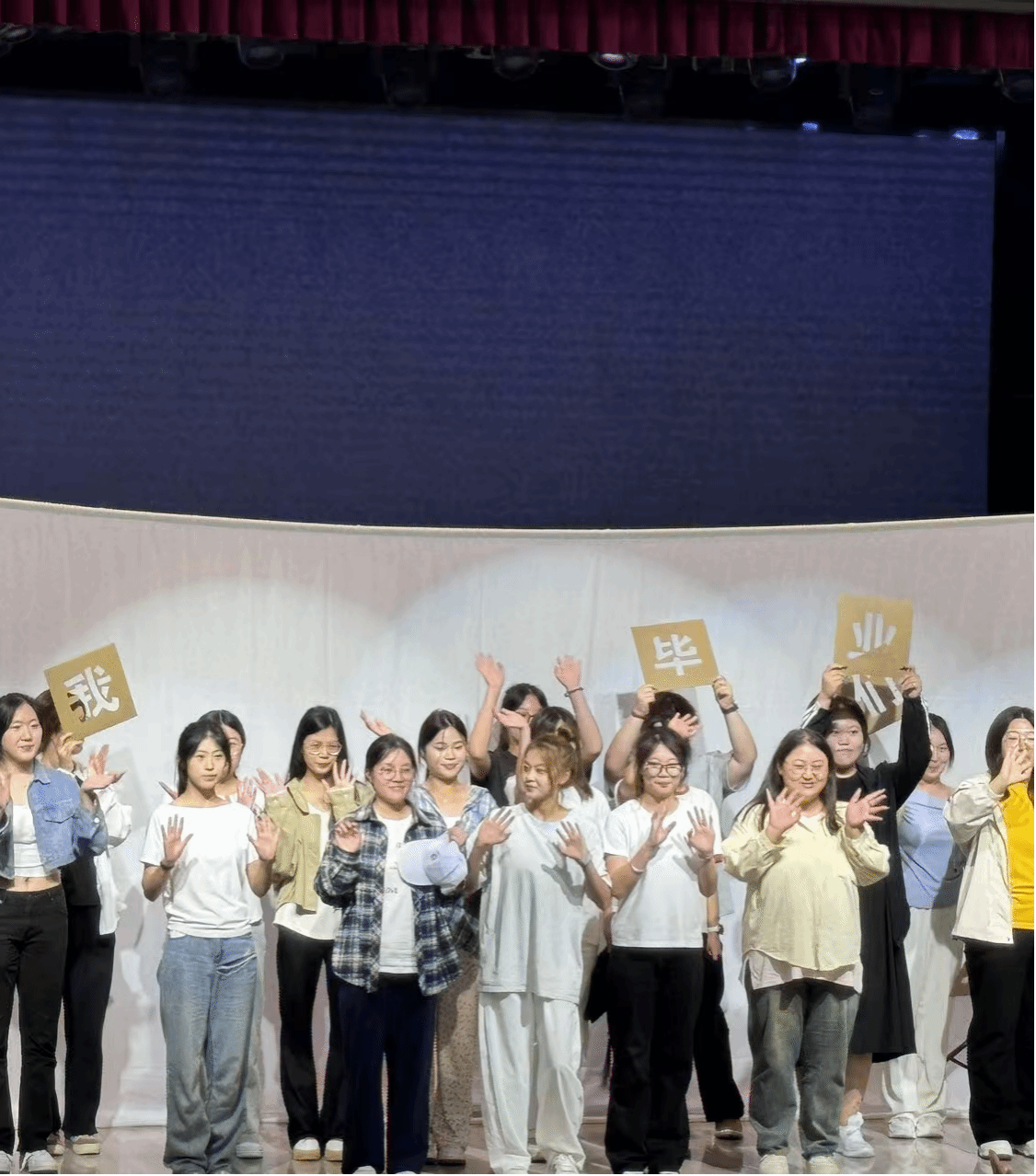 随着灯光渐暗,光影剧《前程大街117号的故事》率先登场。跳动的光束将教室的晨读时光、图书馆的静谧夜晚、操场的欢笑声和独属于21级毕业生的回忆一一呈现,那些藏在岁月里的校园点滴,瞬间唤醒了在场每个人的独家记忆。