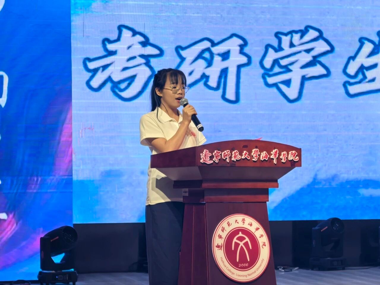 青春因梦想而闪耀,因拼搏而精彩。考研学生代表王丽洋与辽宁省优秀毕业生代表徐福阳依次上台发言,他们用真挚的语言,分享大学时光里的成长与蜕变。那些为梦想全力以赴的日子,那些在挫折中不断前行的勇气,引发了全场的强烈共鸣,让大家看到了奋斗最美好的模样。