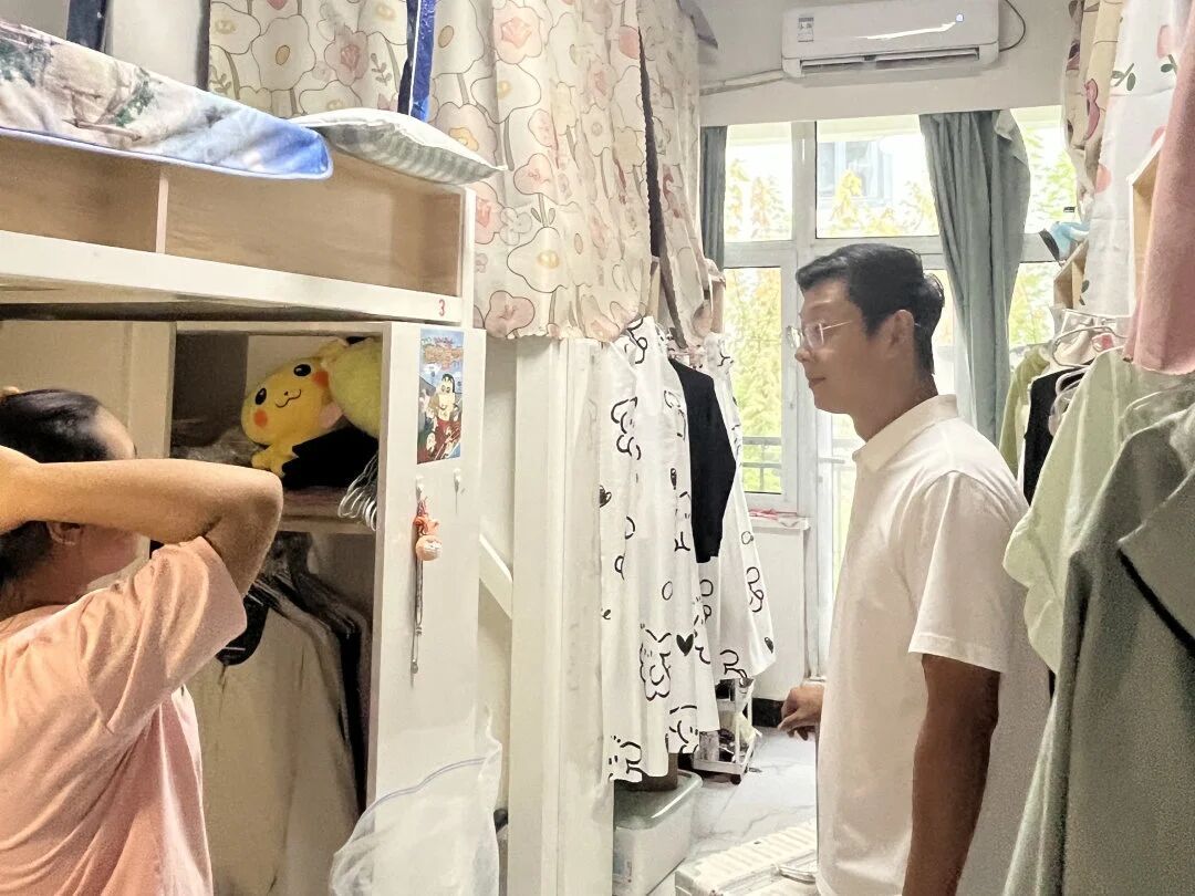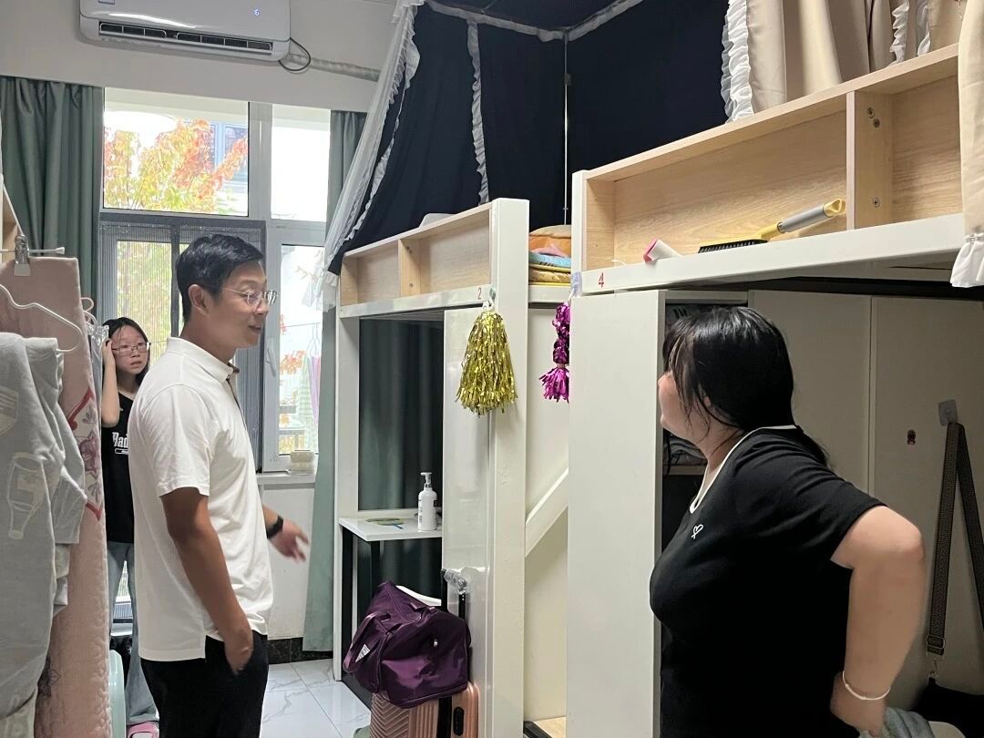 走访期间,老师们高度关注学生的生活与学习状况,与同学们展开亲切交流。同时,对宿舍门窗完好度、水电设施运行情况、桌椅床铺等物品配备情况及卫生环境进行细致检查,重点排查漏水、发霉、墙皮脱落等问题及各类安全隐患,全力保障同学们新学期能够安心入住。