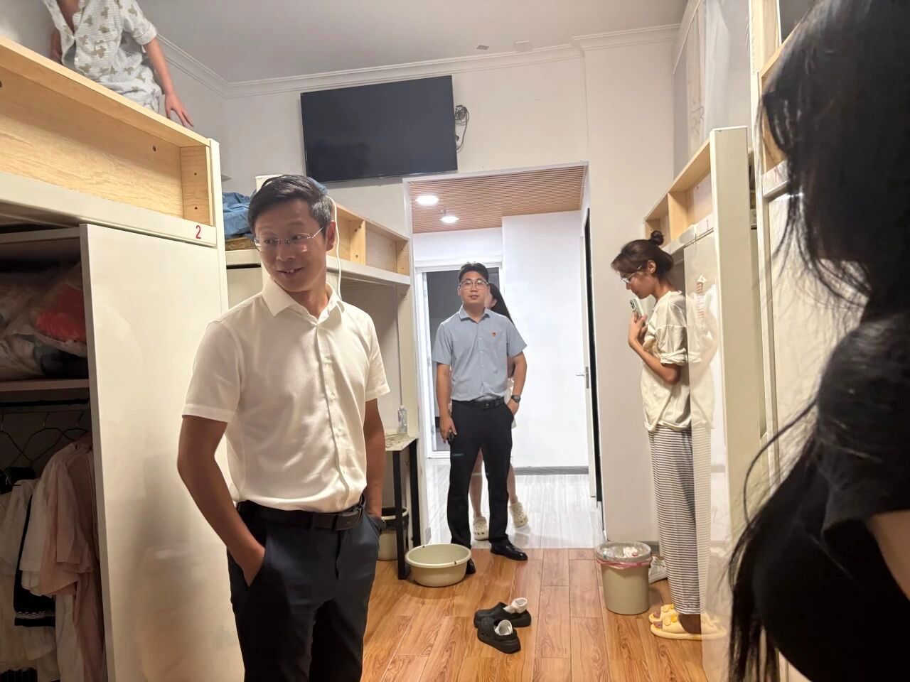 九月迎新,新生携愿启新程,夜查寝室暖人心。为切实保障同学们开启新生活后的住宿安全与生活秩序,外国语学院院长程迎新,学生工作副院长李成宇和辅导员祝浩楠老师深入学生寝室,进行走访慰问,将关怀与责任送到每一位同学身边。