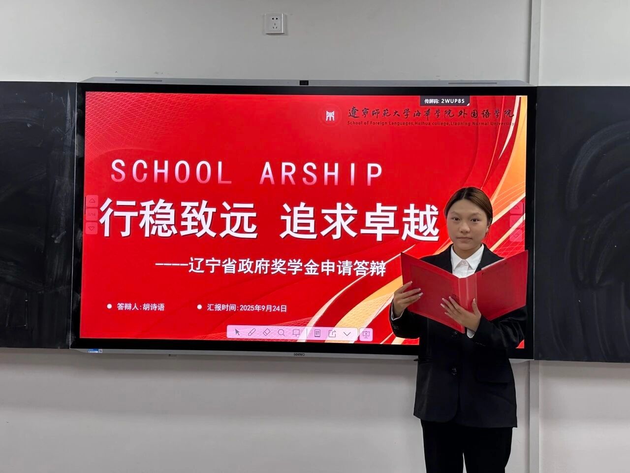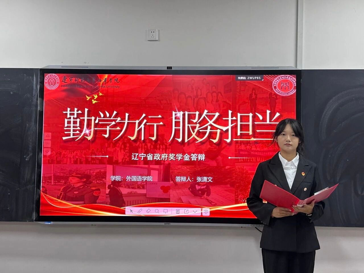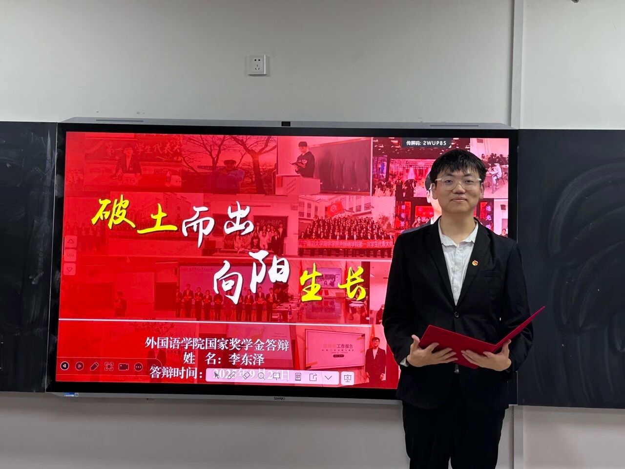 答辩过程中,10位候选人依次登台,分别围绕思想品德、学业成绩、科研竞赛、社会实践及志愿服务等内容,展开全方位展示。充分彰显了外语学子扎实的专业功底、锐意进取的创新精神与全面发展的综合素养,他们出色表现赢得现场评委老师的一致肯定。