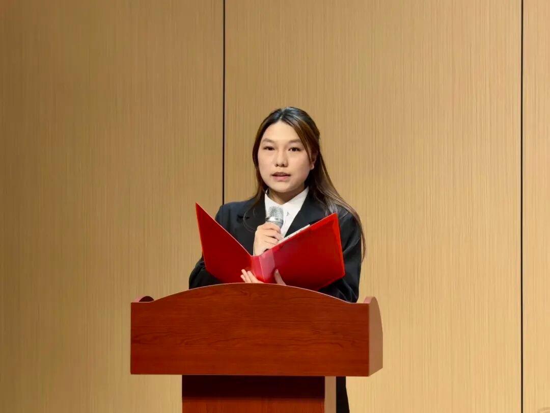 第四项议程,优秀寝室长代表胡诗语发言。胡诗语同学围绕宿舍日常管理标准化、文化建设制度化、室友互助常态化三个方面,汇报工作开展心得。详细说明宿舍在作息管理、卫生督查、安全巡查等日常工作中的落实流程,以及通过制定宿舍公约等方式培育文明风气的具体做法。明确将进一步履行寝室长岗位职责,健全宿舍管理机制,严格落实安全管理要求,牵头营造安全有序、文明规范、整洁有序的宿舍环境,切实发挥宿舍作为校园管理基础单元的作用。