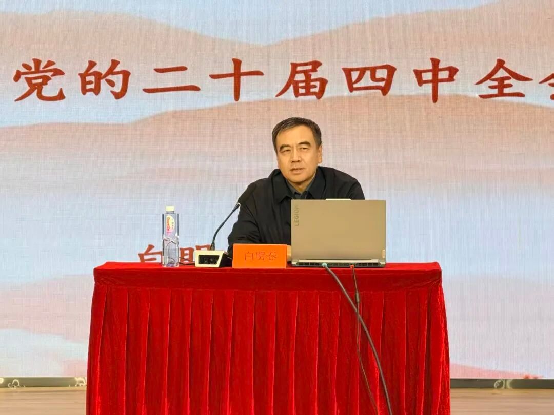 学习会现场,白明春教授以“深刻把握党的二十届四中全会精神核心要义”为主题,以政策原文为根本遵循,结合具体实践案例,清晰梳理党的二十届四中全会精神的脉络和框架,助力参会人员把握会议精神的政治内涵与实践要求。