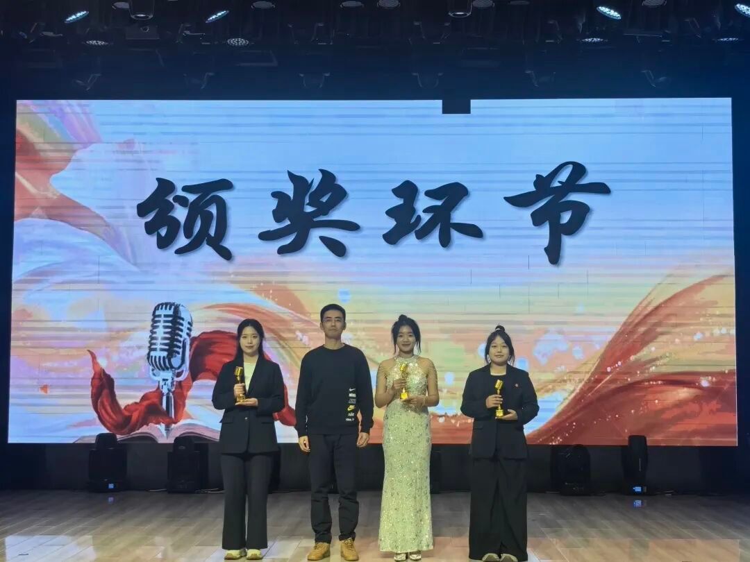 经过多轮角逐,赛事评选出各类奖项。在颁奖环节中,获奖选手代表登台领取荣誉证书,现场氛围庄重有序,充分体现了赛事的规范性与仪式感。其中,外国语学院参赛选手凭借扎实的语言功底、稳健的舞台表现与灵活的临场应变,脱颖而出。荣获“铜话筒”奖项,为学院赢得了荣誉,展现了外院学子的专业素养与青春风采。