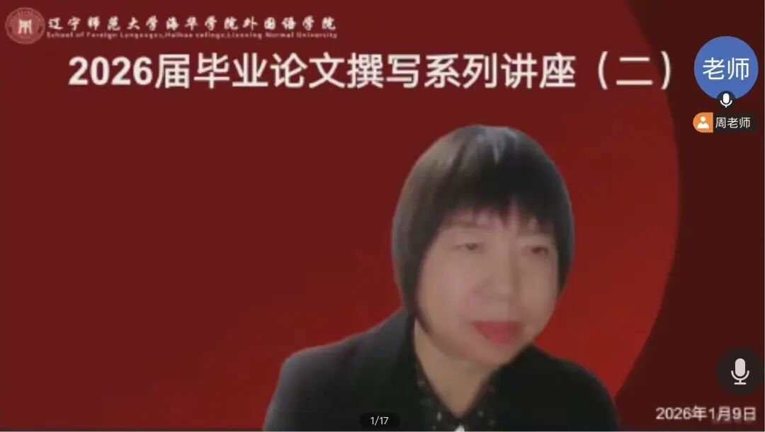 近日,外国语学院成功举办2026届毕业论文撰写系列讲座。本次讲座由我院院长程迎新教授、校教学督导付玲副教授和英语教研室李梓悦月主任主讲,英语专业负责人周弘扬主任主持。内容涵盖了论文提纲、篇章结构、文献综述、格式规范以及写作进度安排等方面,为毕业生们提供了细致且实用的指导。