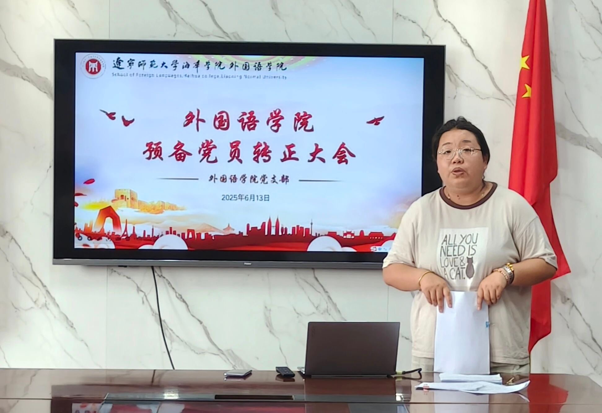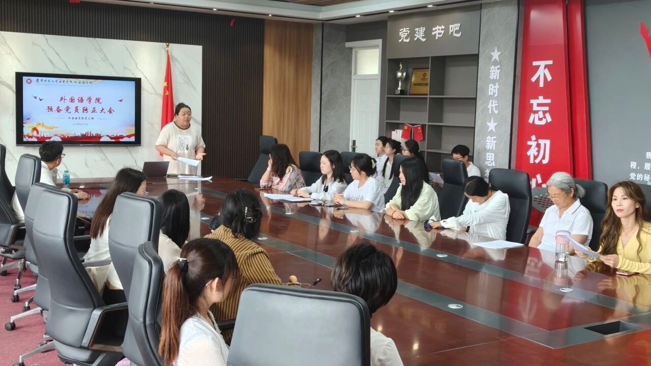 为严格落实党员发展工作要求,强化党组织建设,2025年6月13日,外国语学院党支部于思齐楼三楼党员之家召开党员大会,集中讨论徐福阳、张萱、孙佳茹等预备党员转正事宜。