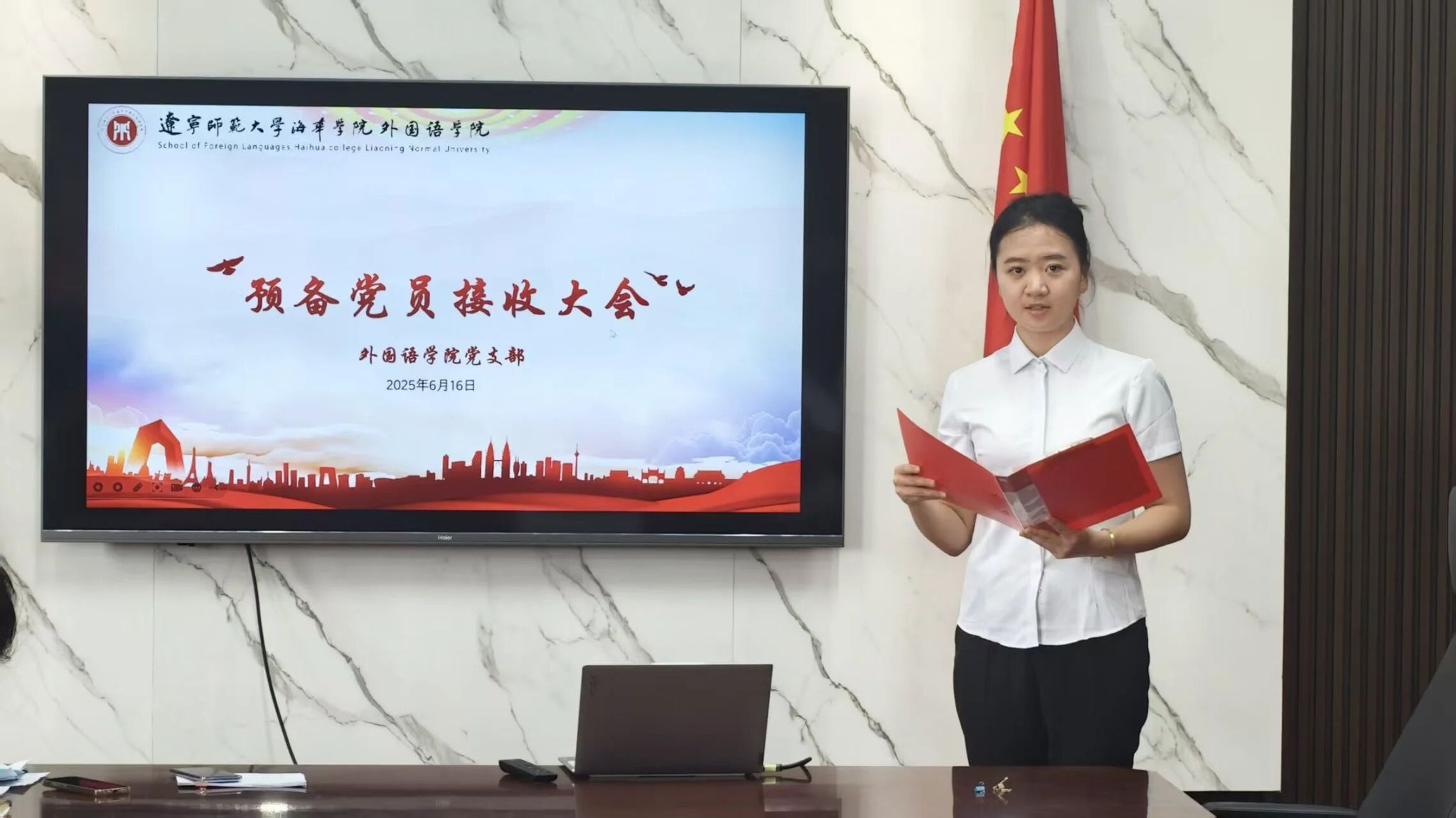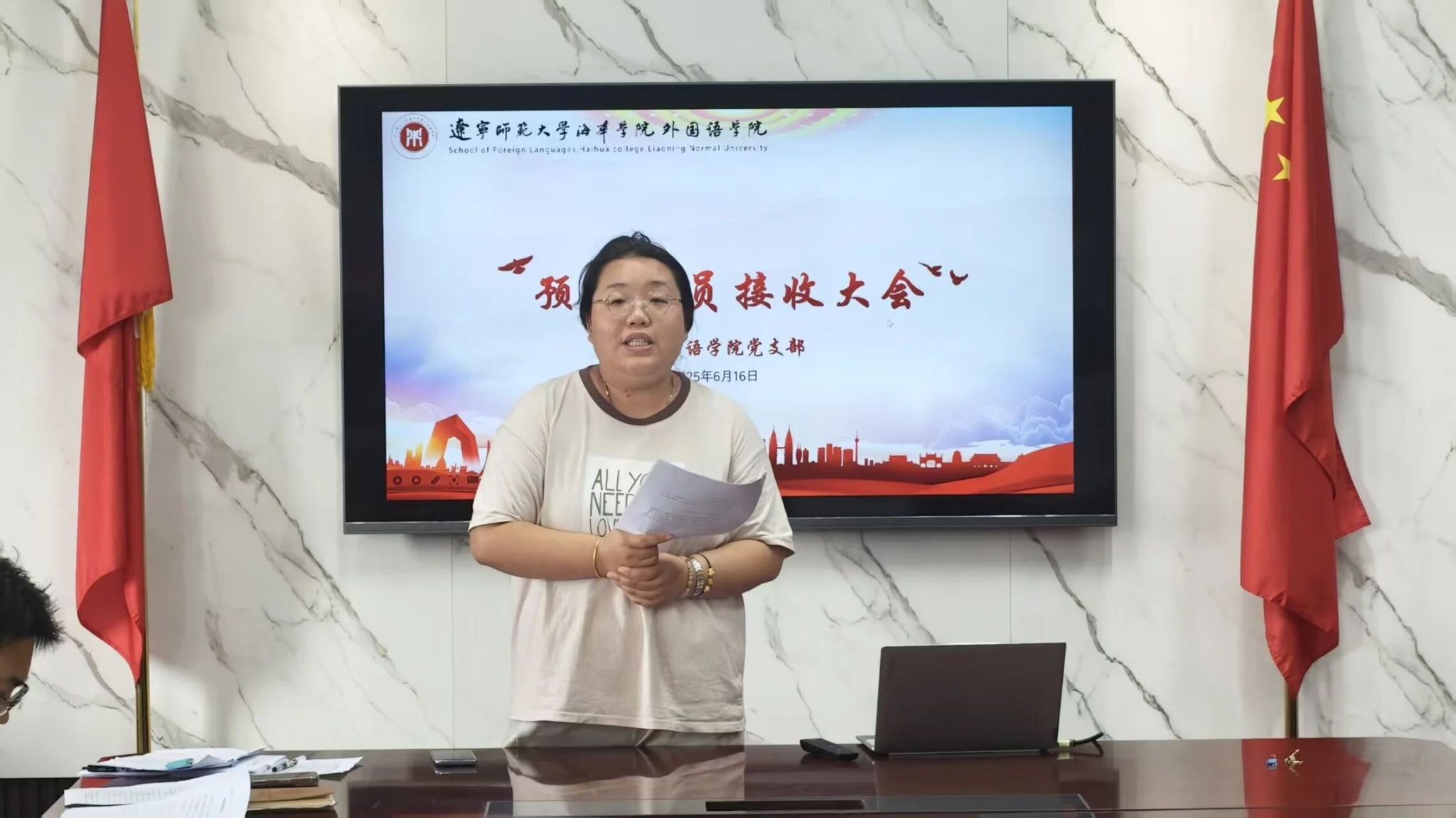 为进一步加强党员队伍建设,提升党组织的凝聚力与战斗力,6月16日,外国语学院党支部于思齐楼三楼党员之家召开预备党员接收大会。会议由党支部组织委员梁策主持,党支部全体教师党员及学生党员出席会议。本次会议严格按照党员发展程序规范有序开展。