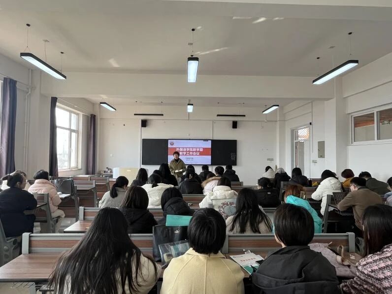 为落实学校教学工作任务,做好新学期各项教学工作,外国语学院于开学初,在弘毅楼102召开2025春季新学期教学工作例会,会议由外国语学院副院长王超主持,全体教师参加本次会议。