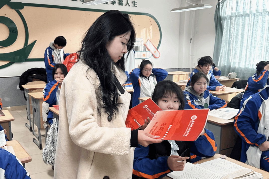 以王楚雯同学为代表的回访团队怀着对母校的深厚情谊,满怀诚意地重返高中母校。在此次宣讲活动中,她准备充分,内容丰富详实。在宣讲的过程中,王楚雯同学着重对海华学院的专业设置进行了深入解读。她详细说明了外国语学院各专业的课程体系,如英语专业的英美文学、跨文化交际课程,让同学们清晰了解专业学习方向,为未来的专业选择提供有力参考。同时,她还分享了学校内如外语文化节、语言角等丰富多彩的社团活动,让学弟学妹们充分感受到海华学院充满活力的校园氛围。