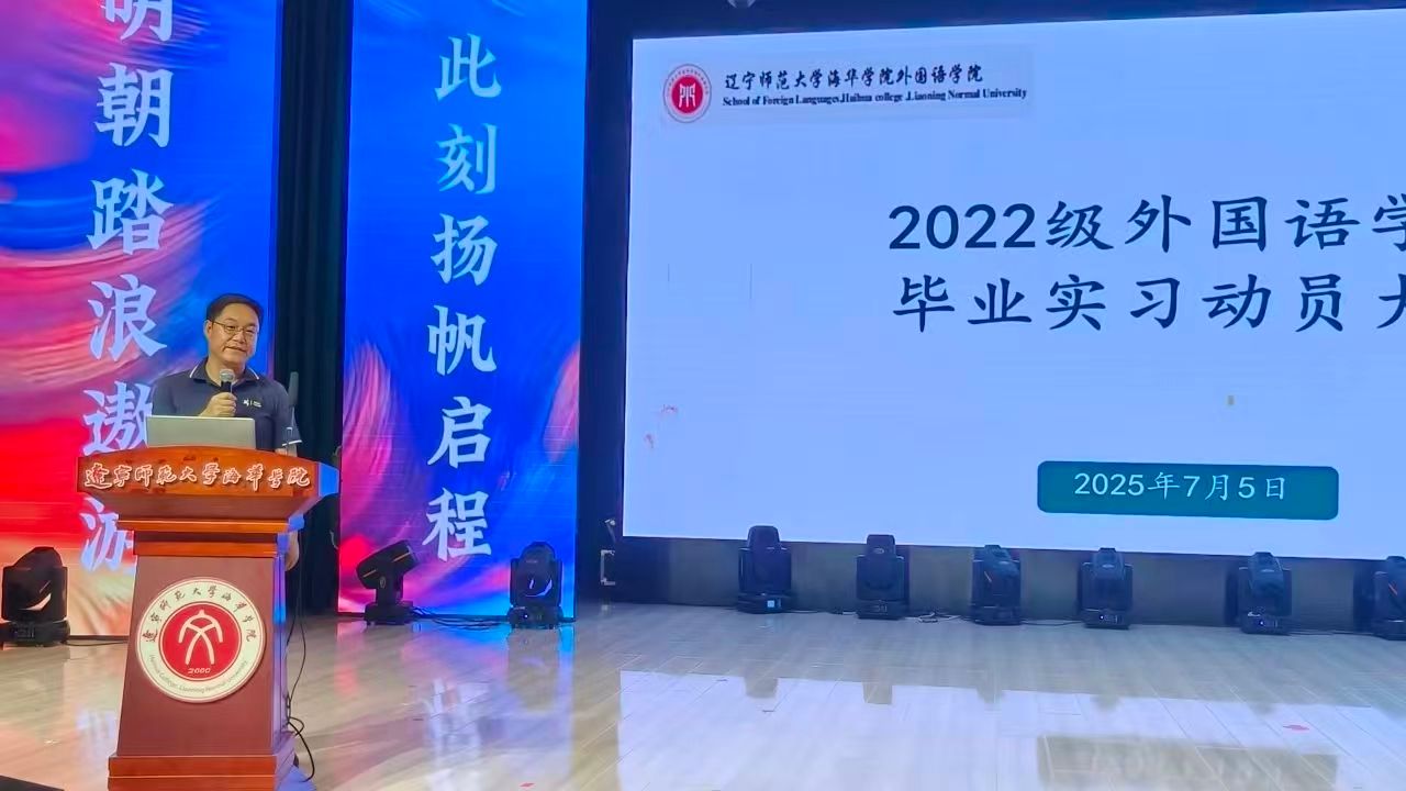 盛夏将至,征程在即。为进一步强化学生实践能力与职业素养,帮助同学们在未来的职业道路上找到方向。外国语学院在厚德楼3楼报告厅召开2022级毕业实习动员大会,活动由22级辅导员徐莲雪主持。