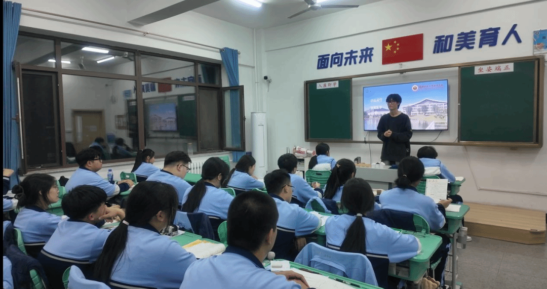 活动筹备阶段,谢序翔同学展现出高度的责任感与细致的规划能力。他提前与高中母校取得联系,多次与昔日恩师深入沟通,精准把握学弟学妹的需求与困惑;同时精心制定宣讲方案,反复打磨宣讲内容,将大学特色与学习经验系统整合,并逐字逐句优化演讲稿,力求让分享既有深度又接地气。