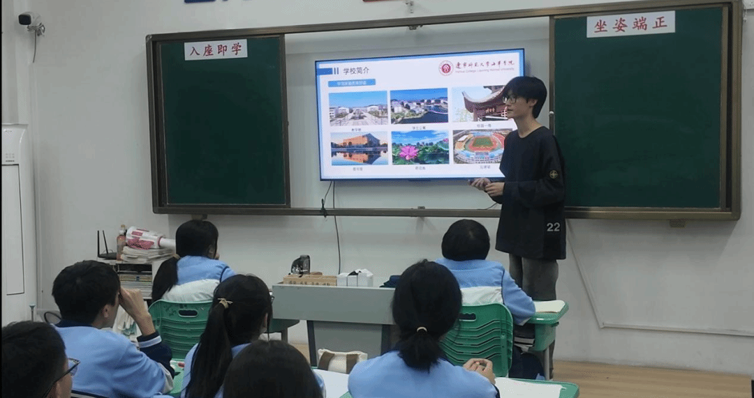 宣讲过程中,谢序翔同学以亲切的口吻分享高中学习方法与备考技巧,为正处于高三冲刺阶段的学弟学妹送上实用“锦囊”;他还生动描绘辽宁师范大学海华学院优美的校园环境、雄厚的师资力量与丰富的社团活动,结合自身在大学尝试新事物、探索未知的经历,让在场同学对大学生活充满憧憬,更坚定了冲刺高考的信心。
