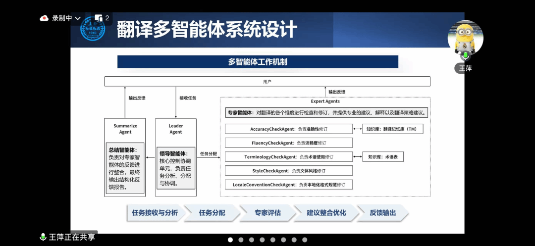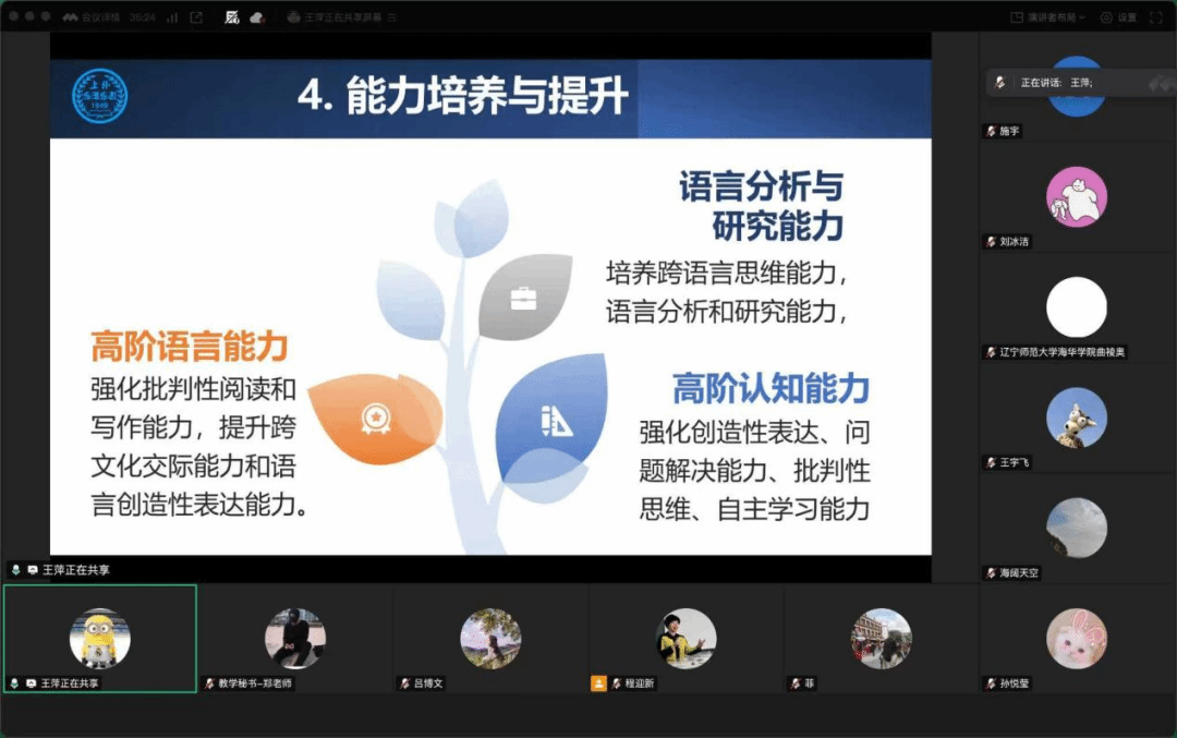 讲座互动环节,王萍教授与我院教师展开了深入交流。唐文晶老师对“AI润色作文可能导致学生真实能力退化”这一问题提出疑虑,王教授回应指出,AI写作评价需要基于个性化提示词进行迭代优化,单次设计难以见效,必须结合教学实践持续调整。她建议以模板化提示词为起点,结合学校具体需求进行定制化修改。施宇老师围绕“如何设计渐进式写作任务以降低AI依赖”以及“跨文化场景实践中的学生反馈”这两个核心问题向王教授请教,王教授指出,当前通用大模型在教学应用中存在局限性,尤其在文化背景适配和个性化教学场景方面表现明显,建议构建包含教案、教学资源等的个人知识库,以补充大模型缺失的个性化内容。