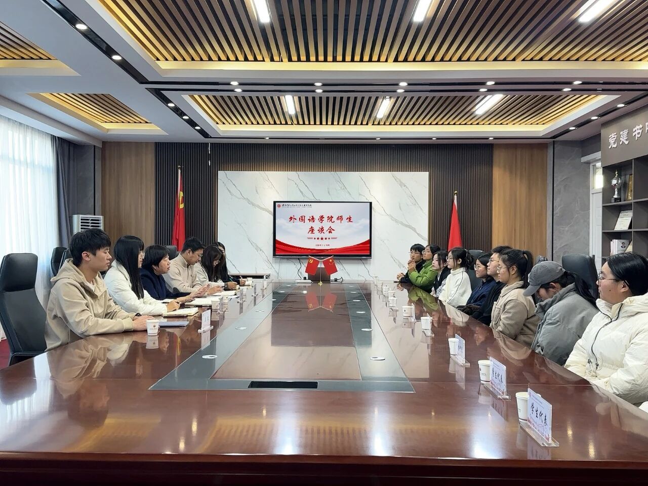 为更好地规划学业发展、掌握备考技巧,外国语学院于近日召开考研座谈会。外国语学院院长程迎新、教学副院长王超、学生工作副院长李成宇、专任教师吴尽、辅导员梁策、徐莲雪出席本次会议,与考研学生代表共聚一堂,共话考研之路。